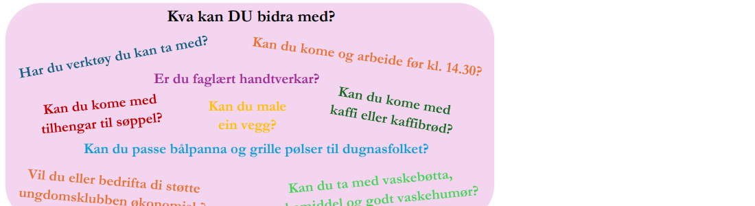 Heile veke 16 er det dugnadstid på Ungdommens Hus.